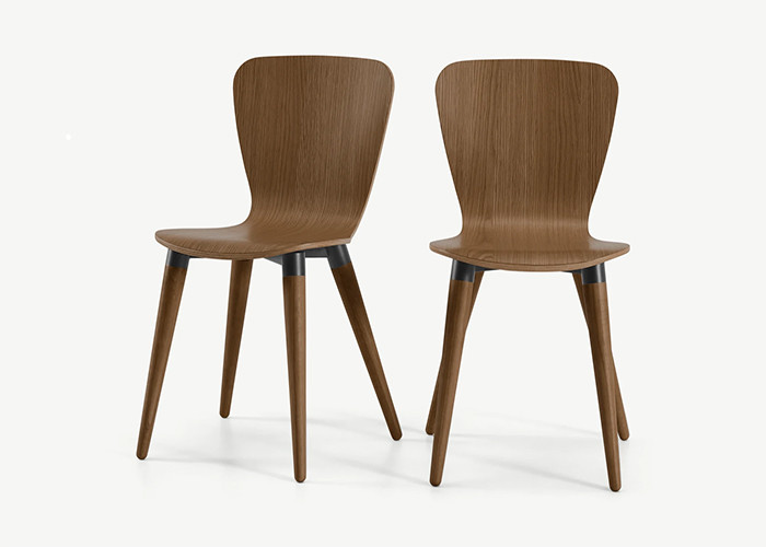 گردو و فلز مشکی یک ترکیب برنده برای این مجموعه از 2 صندلی غذاخوری است.
